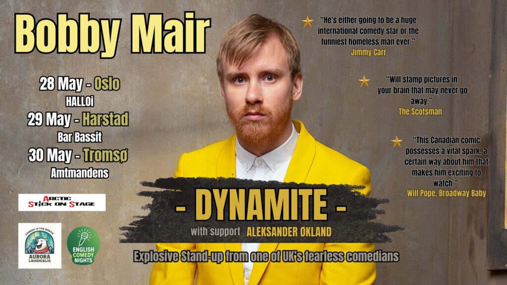 Bobby Mair brings his explosive stand-up to Oslo with a show full of brutally honest jokes, outrageous stories and unpredictable comedy.
